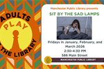 Sit By the SAD Lamps 06 Mar 2026 Do you suffer from seasonal affective disorder (SAD)? The winter months can be especially tough with less sunlight, making the days longer. Get some relief by sitting by our SAD lamps on Fridays in January, February, and March. Manchester Public Library, 586 Main Street, Manchester, CT 06040 3 more dates Tagged as: , Adults, Library