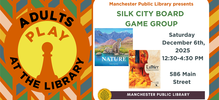 Learn to play: Nunatuk: Temple of Ice, Horizon Zero Dawn, Nature, Luthier, Red Letter, Yellow Letter, and more! No need to bring any games; we'll provide them all. Free program for adults; light refreshments to be served.